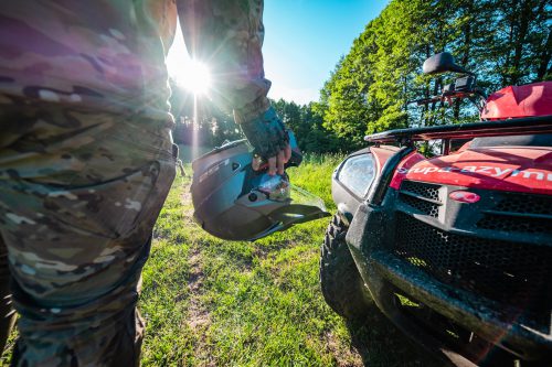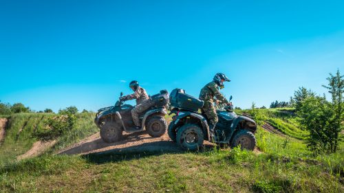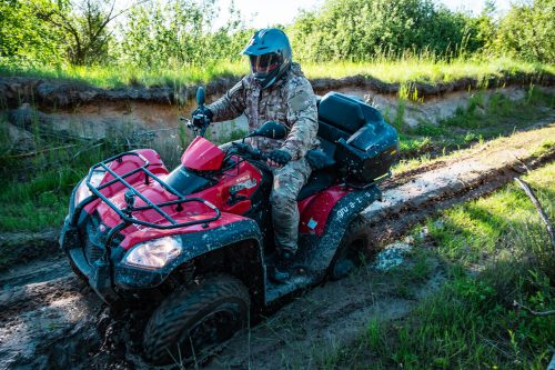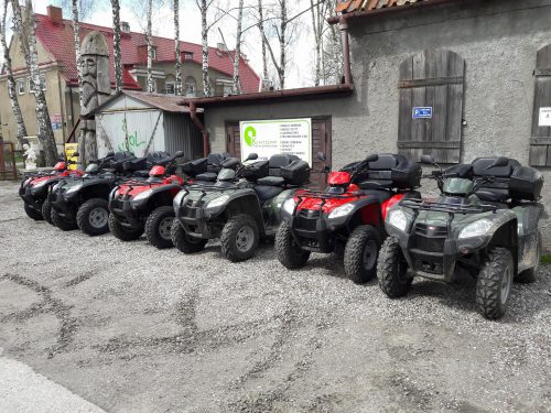 Dysponujemy flotą dwuosobowych quadów, które dopuszczone są do ruchu po drogach publicznych, a do ich prowadzenia wystarczy prawo jazdy kat. B. Nasze maszyny wyposażone w silniki o pojemności 500 cm3 posiadają odpowiednią moc, aby zapewnić Ci niezapomniane wrażenia z jazdy. Grupie wybierającej jazdę quadami za każdym razem towarzyszy przewodnik, który wybierze trasę odpowiednią do umiejętności uczestników oraz udzieli odpowiednich wskazówek podczas jazdy po mazurskich bezdrożach. Jeśli nie miałeś styczności z tego typu maszyną nic straconego, nauczymy cię wszystkiego – to wcale nie jest trudne. Nasz doświadczony instruktor poprowadzi Cię w najbardziej malownicze i nieodkryte zakątki Mazur.